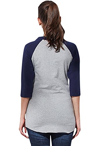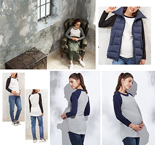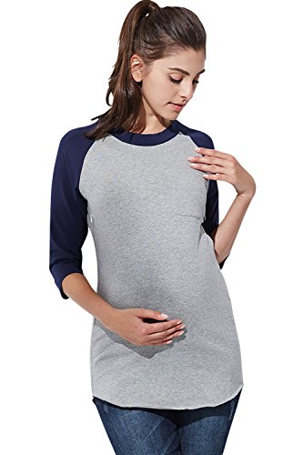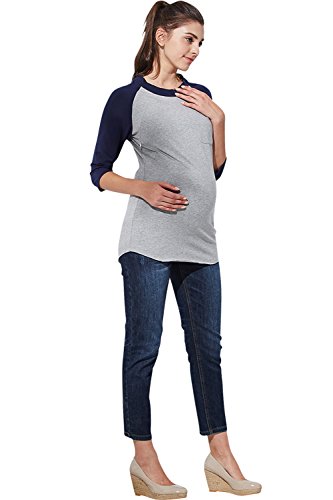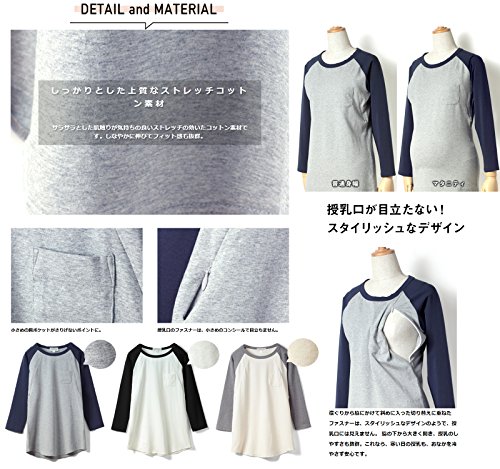 Sweet Mommy ラグラン 9分 コットン 大人カジュアル ロング丈 フィット Tシャツ 長袖 トップス シンプル 授乳服 マタニティ/L/杢グレー×ネイビー