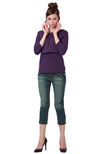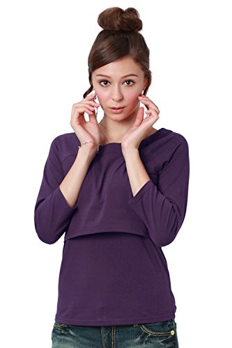 Sweet Mommy デコルテすっきり 授乳口付 Tシャツ ストレッチコットン すっきりネックライン ラグラン 【8分丈】 授乳トップス 授乳服 マタニティウェア 3L パープル