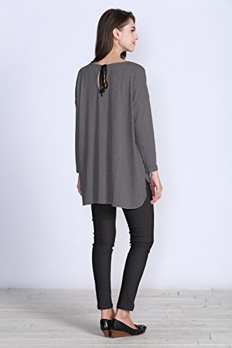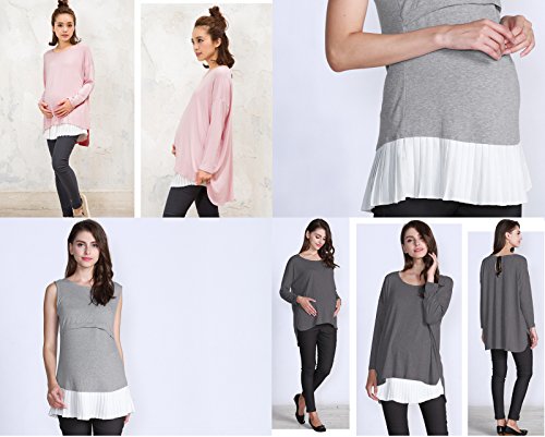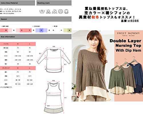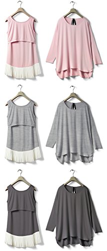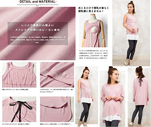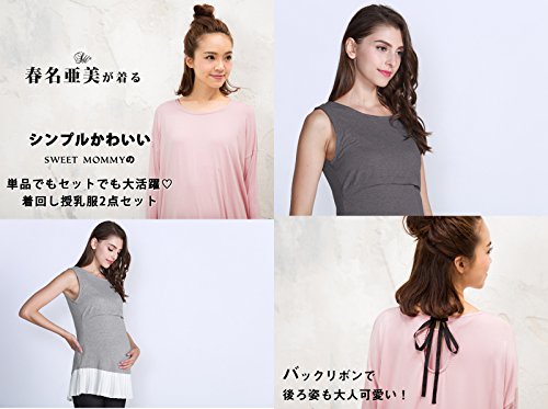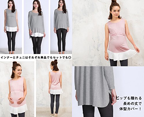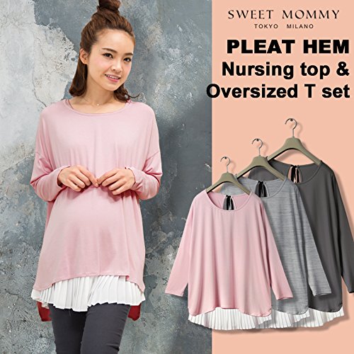 Sweet Mommy ゆったりシルエットトップス&裾プリーツ授乳タンク 2点セット 大人カワイイ レイヤードスタイル ストレッチレーヨン シフォンプリーツ バックリボン 体型カバー 単品でも着られる 着回し バックロング 授乳服 マタニティ/L/チャコール