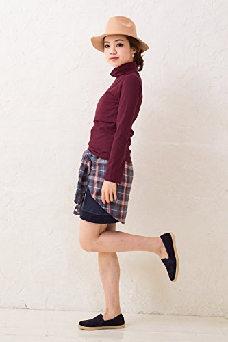 Sweet Mommy プレミアムコットンベア天竺 タートル しっとり滑らか ストレッチフィット すっきりシルエット ハイネック 授乳 カットソー インナー 【冬クララ】 マタニティ 授乳服/ボルドー/S