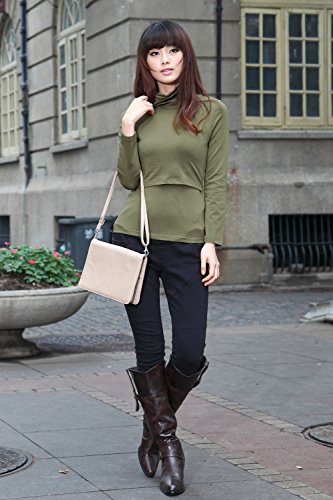 Sweet Mommy プレミアムコットンベア天竺 タートル しっとり滑らか ストレッチフィット すっきりシルエット ハイネック 授乳 カットソー インナー 【冬クララ】 マタニティ 授乳服/カーキ/L
