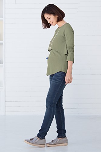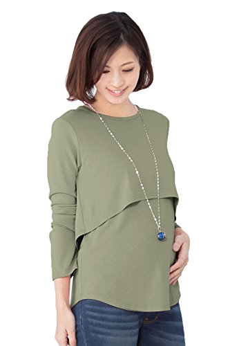 Sweet Mommy さらさら レイヤード 授乳Tシャツ 長め丈 バックロング シルエットきれい シンプル 長袖 着回し 授乳服 マタニティ 産前産後/M/カーキ