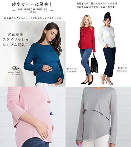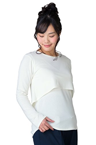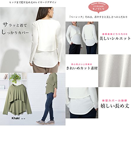 Sweet Mommy マタニティトップス 授乳服 授乳口付き 長め丈 レイヤード バックロング シンプル さらさらレーヨン Tシャツ 大きいサイズ 小さいサイズ 長袖 産前産後/S/オフホワイト