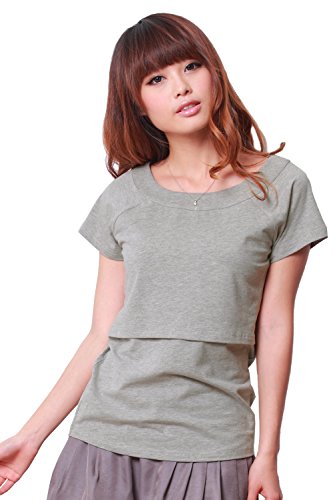Sweet Mommy マタニティトップス 授乳服 授乳口付き Tシャツ デコルテすっきり ストレッチコットン 大きいサイズ 小さいサイズ スリムフィット 春 夏 半袖 産前産後/杢グレー/LL