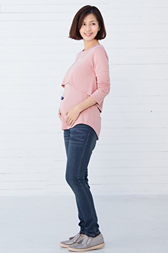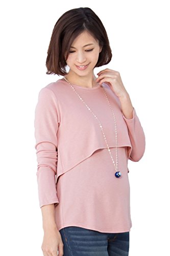 Sweet Mommy さらさら レイヤード 授乳Tシャツ 長め丈 バックロング シルエットきれい シンプル 長袖 着回し 授乳服 マタニティ 産前産後/S/ピンク