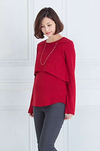 Sweet Mommy さらさら レイヤード 授乳Tシャツ 長め丈 バックロング シルエットきれい シンプル 長袖 着回し 授乳服 マタニティ 産前産後/LL/ダークレッド