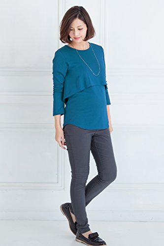 Sweet Mommy さらさら レイヤード 授乳Tシャツ 長め丈 バックロング シルエットきれい シンプル 長袖 着回し 授乳服 マタニティ 産前産後/M/ブルー