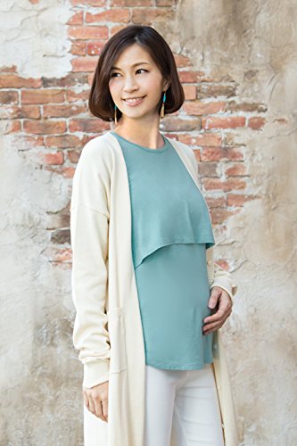 後ろ下がりを付けたおしゃれなレイヤードデザインで、胸下の切り替えがあってもデザインに馴染んで授乳服に見えません。