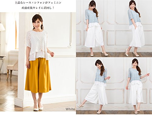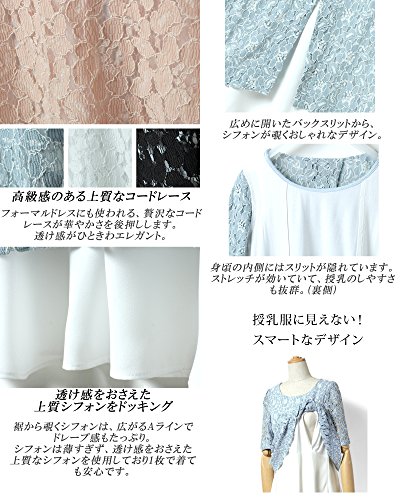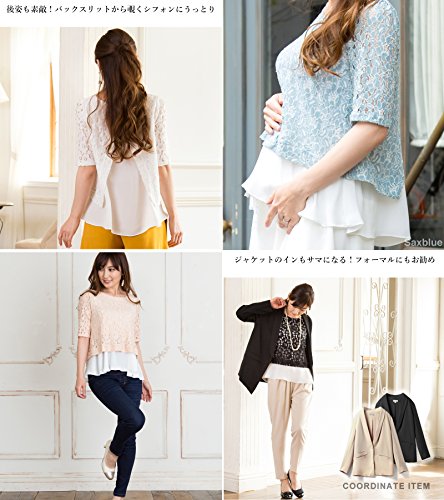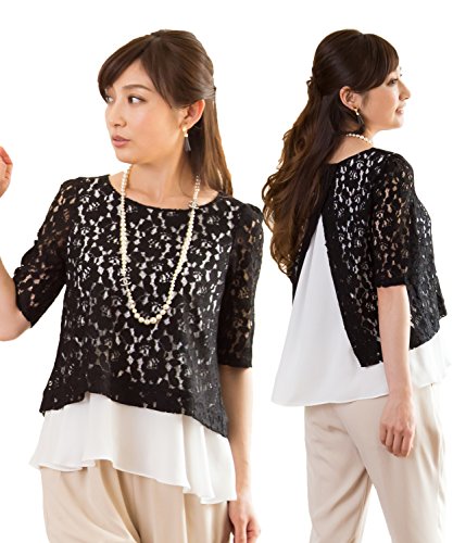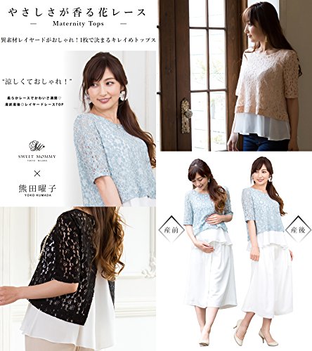 Sweet Mommy マタニティトップス 授乳服 授乳口付き シフォン×コードレース 大きいサイズ バックスリット レイヤード 透け感トップス 上品 フォーマル Tシャツ 春 夏 秋 長袖 オフィス 産前産後 お宮参り/ブラック/L