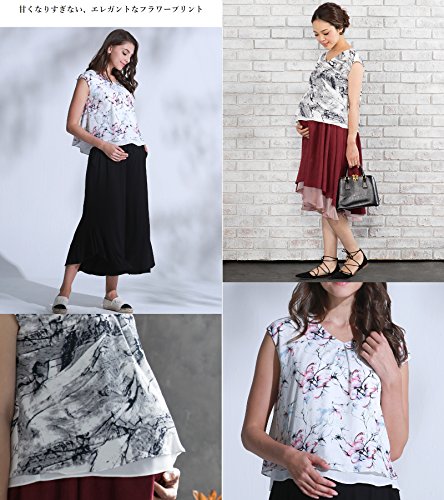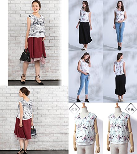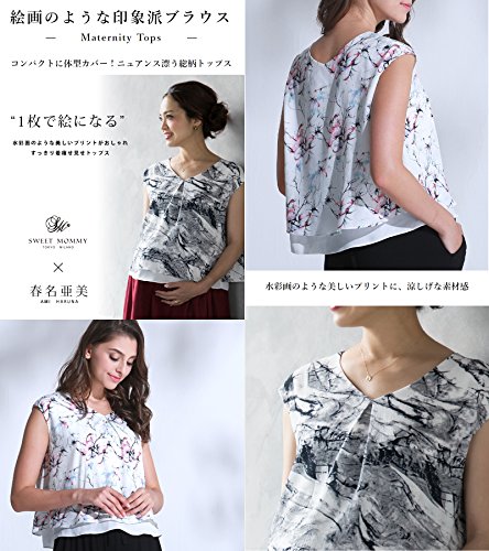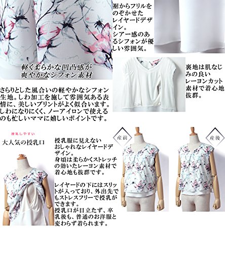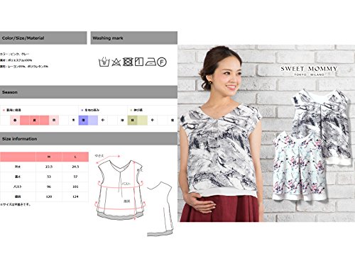 Sweet Mommy マタニティ 授乳口付き トップス 水彩画風 フレンチスリーブ 総柄 春 夏 半袖 産前産後 授乳服/ピンク/L
