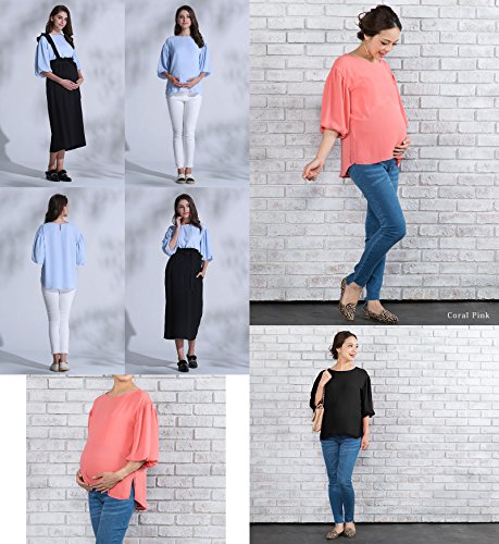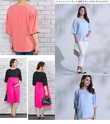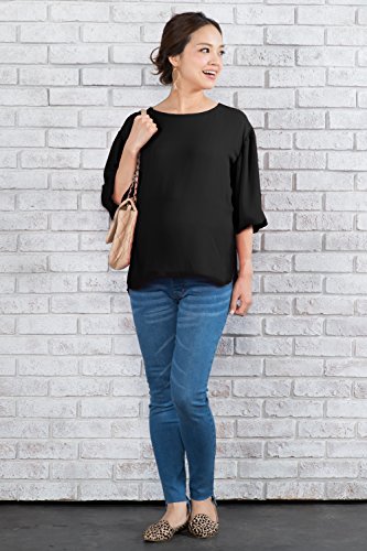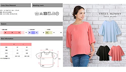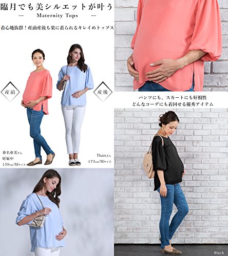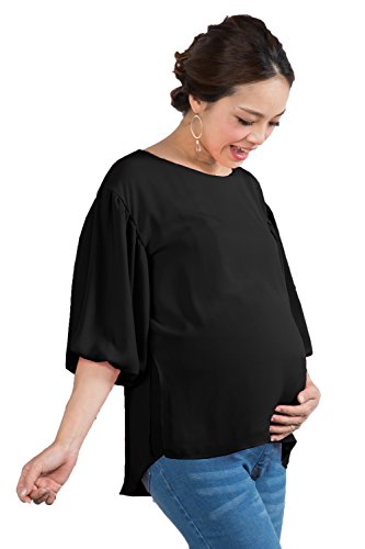 Sweet Mommy マタニティトップス 授乳服 授乳口付き Tシャツ ボリュームスリーブ ジョーゼット オフィス 大きいサイズ 春 夏 秋 半袖 産前産後/ブラック/M