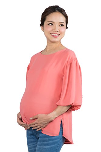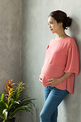 Sweet Mommy マタニティトップス 授乳服 授乳口付き Tシャツ ボリュームスリーブ ジョーゼット オフィス 大きいサイズ 春 夏 秋 半袖 産前産後/コーラルピンク/M