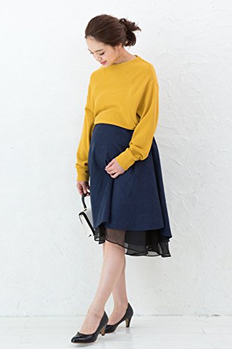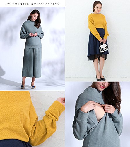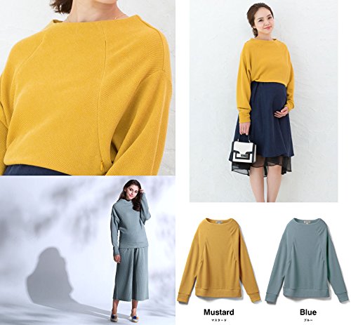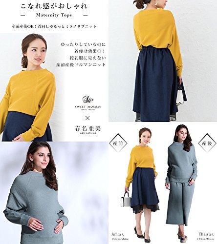 Sweet Mommy マタニティトップス 授乳服 授乳口付き ミラノリブドルマントップス Tシャツ 大きいサイズ 春 秋 冬 長袖 産前産後/マスタード/L