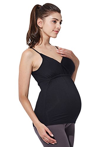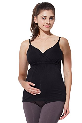 Sweet Mommy さらさら竹繊維 授乳キャミ 特注パッド入り カップ裏はオーガニックコットン100% ノンワイヤー キャミソール 授乳口付き トップス インナー 天然素材 春 夏 秋 冬 産前産後 授乳服 マタニティ S ブラック