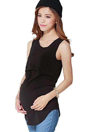 Sweet Mommy 竹繊維 ラウンドネック 授乳タンクトップ ロング丈 シンプル 美シルエット 産前産後 授乳トップス インナー 臨月 授乳服 マタニティ L ブラック