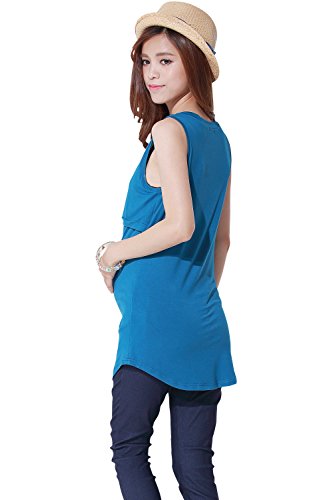 Sweet Mommy 竹繊維 ラウンドネック 授乳タンクトップ ロング丈 シンプル 美シルエット 産前産後 授乳トップス インナー 臨月 授乳服 マタニティ M ブルー