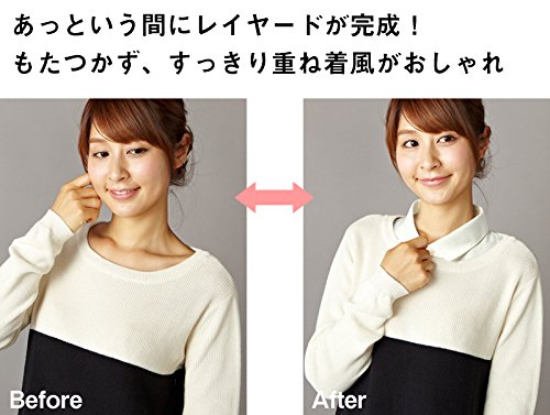 通常の付け襟のようにずり上がったりせず、裾も長めなので開きの広いネックラインにも合わせられます。