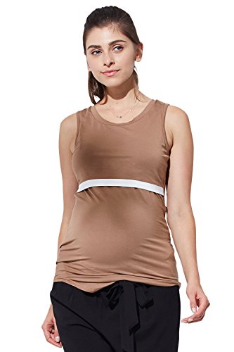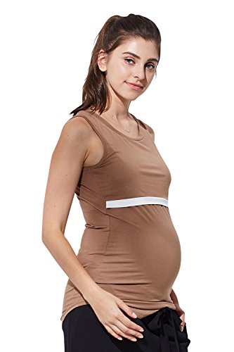 Sweet Mommy 竹繊維 ラウンドネック 授乳タンクトップ ロング丈 シンプル 美シルエット 産前産後 授乳トップス インナー 臨月 授乳服 マタニティ L モカ×ホワイト