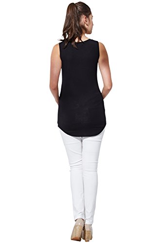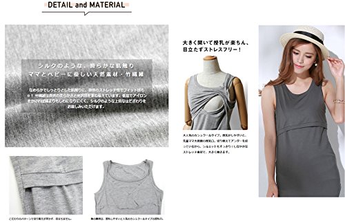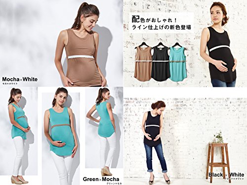 Sweet Mommy 竹繊維 ラウンドネック シンプル ロングタンクトップ 授乳服 / マタニティ S ブラック×ホワイト