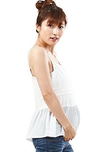 Sweet Mommy シフォン裾フリル 授乳キャミ コットンストレッチ ジョーゼット レイヤード インナー KUMADAコラボ マタニティ 授乳服/LL/オフホワイト