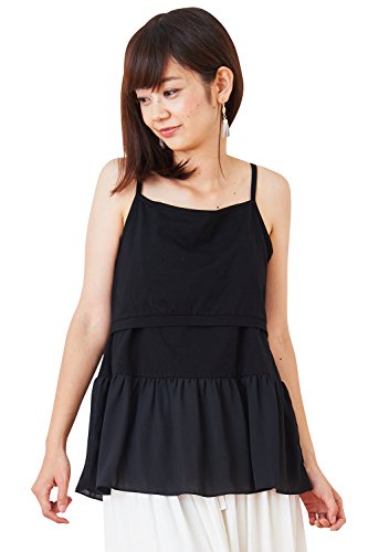 Sweet Mommy シフォン裾フリル 授乳キャミ コットンストレッチ ジョーゼット レイヤード インナー KUMADAコラボ マタニティ 授乳服/M/ブラック