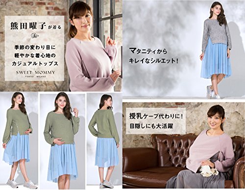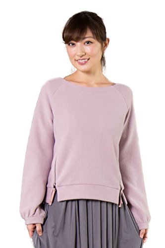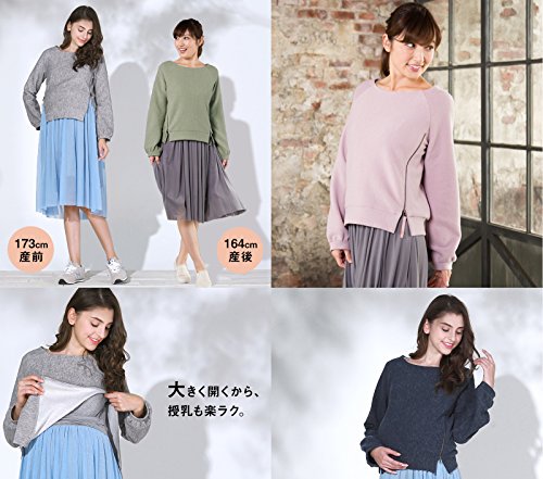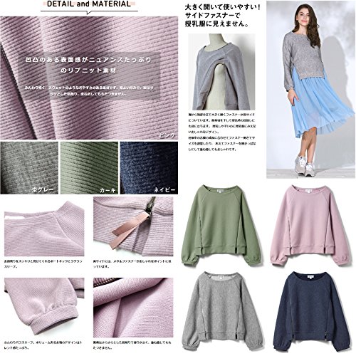 Sweet Mommy サイドジップ リブニット 授乳トップス ボートネック ふんわりパフスリーブ スウェット風 授乳ケープ 目隠し 産前産後 マタニティ 授乳服/M/ピンク