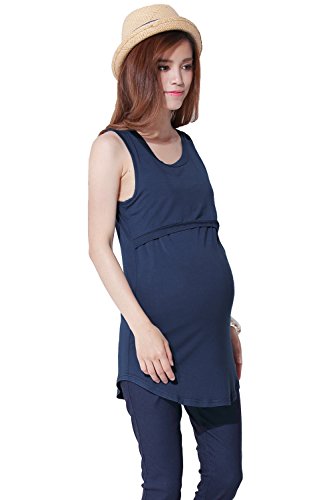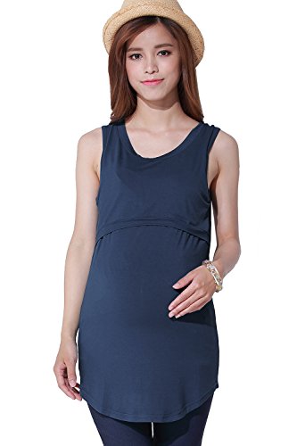 Sweet Mommy 竹繊維 ラウンドネック 授乳タンクトップ ロング丈 シンプル 美シルエット 産前産後 授乳トップス インナー 臨月 授乳服 マタニティ/ネイビー/LL