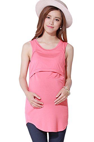 Sweet Mommy 竹繊維 ラウンドネック 授乳タンクトップ ロング丈 シンプル 美シルエット 産前産後 授乳トップス インナー 臨月 授乳服 マタニティ/フラミンゴ/3L