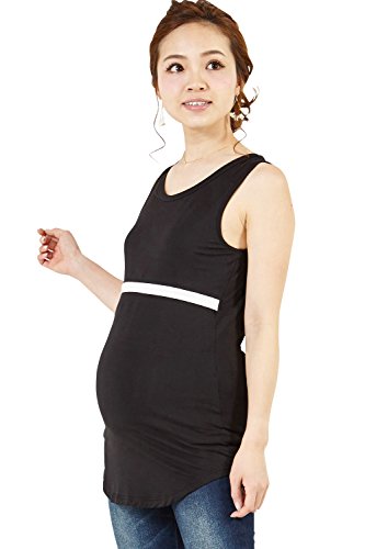 Sweet Mommy 竹繊維 ラウンドネック 授乳タンクトップ ロング丈 シンプル 美シルエット 産前産後 授乳トップス インナー 臨月 授乳服 マタニティ/ブラック×ホワイト/LL