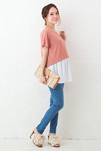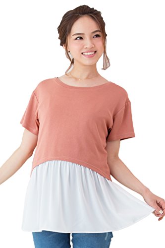 Sweet Mommy シンプルTEE シフォンフリルキャミ 2点セット 授乳口付き レーヨン Tシャツ トップス インナー 春 夏 半袖 産前産後 授乳服 マタニティ/サーモンピンク/L