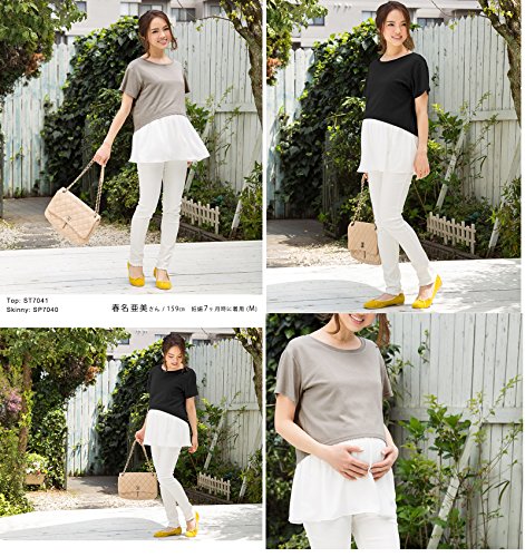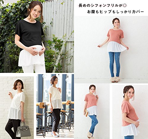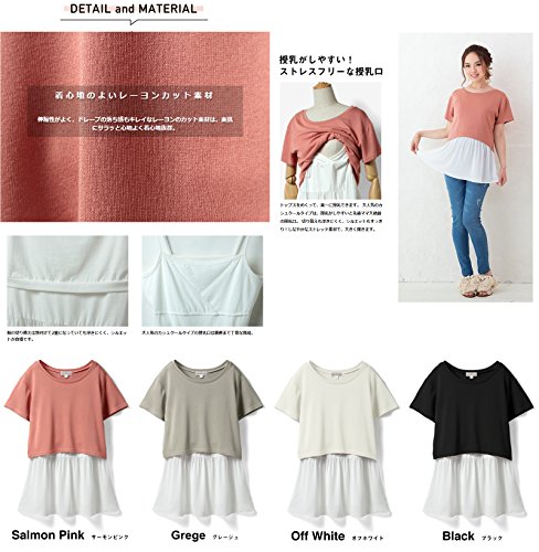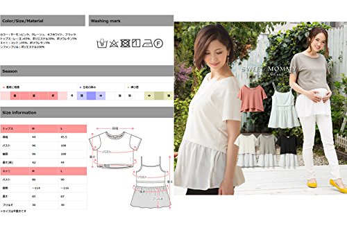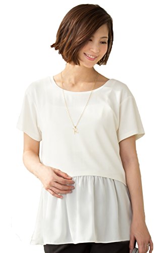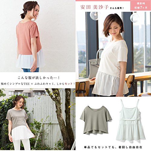 Sweet Mommy シンプルTEE シフォンフリルキャミ 2点セット 授乳口付き レーヨン Tシャツ トップス インナー 春 夏 半袖 産前産後 授乳服 マタニティ/オフホワイト/L