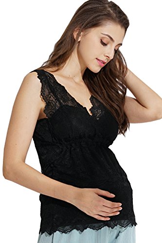 Sweet Mommy マタニティインナー ソフトカップ付き ストレッチレース トップス 授乳服 授乳口付き チクチクしない 大きいサイズ カップ取り外し可能 立体ギャザーでスリムフィット マタニティフォト 産前産後/ブラック/M