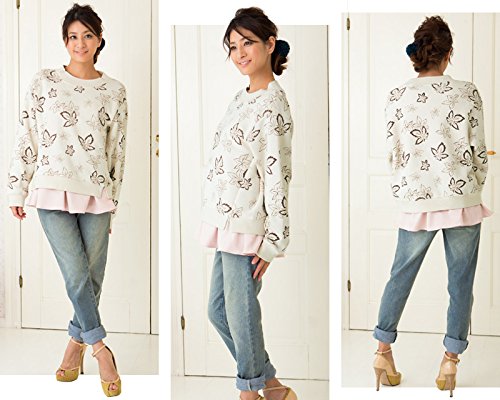 スウィートマミー (Sweet Mommy) リーフ柄プリント スウェット 長袖 プルオーバー 授乳服 / マタニティ S オフホワイト