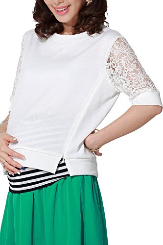 スウィートマミー(Sweet Mommy) レース スリーブ 裏毛 スウェット プルオーバー 半袖 授乳服 / マタニティ L ホワイト