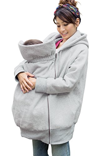 Sweet Mommy ふわふわ裏起毛 厚手 ロング フードパーカー ママアウター マルチ防寒 だっこ対応 高機能ダッカー付き ベビーカーカバー エルゴにも マタニティ 産前産後 春 秋 冬 L 杢グレー