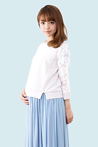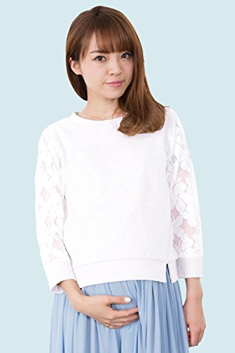 Sweet Mommy スウェット×レース 甘辛ミックス 透け感プルオーバー 裏毛 授乳服 / マタニティ L ホワイト