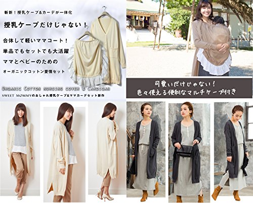 Sweet Mommy オーガニックコットン 抱っこ対応 ロングカーデ 授乳ケープ ベビーカーカバー ダッカー付き 3WAY 授乳ケープカーデセット/F/チャコール