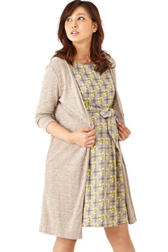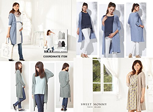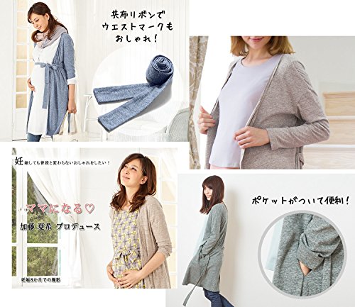 Sweet Mommy ナチュラル 杢カラー ロングカーディガン 柔らか コットンカット すっきりシルエット フロントフック ウエストリボン付き マタニティ/M/ベージュ