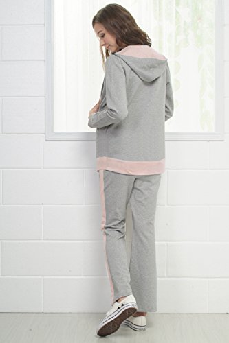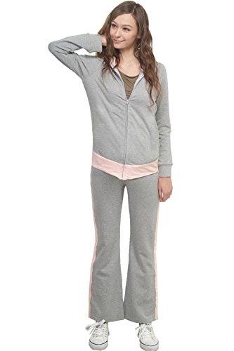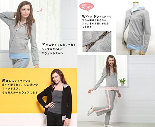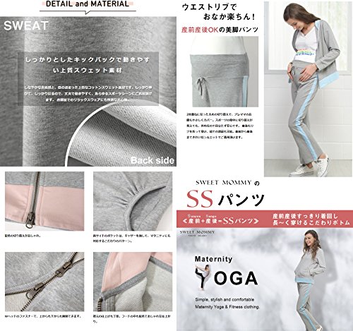 Sweet Mommy 上質コットンスウェットスーツ 上下2点セット Wヘッドファスナー マタニティヨガ マタニティビクス パーカー&パンツ スポーツウェア ウエストリブ ジャージ フィットネス ルームウェア マタニティ 産前産後/L/グレー×ピンク