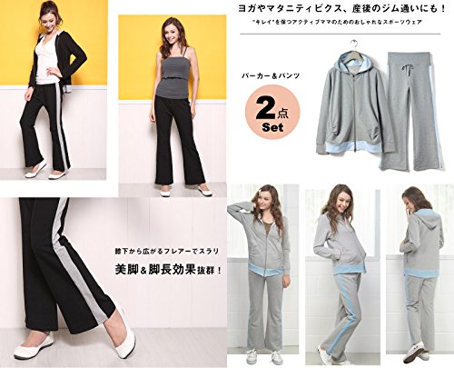 - 【ヨガやマタニティビクスに!】上質スウェット素材でおしゃれ♪産前産後兼用のスポーツウェア・パーカー&パンツセット
