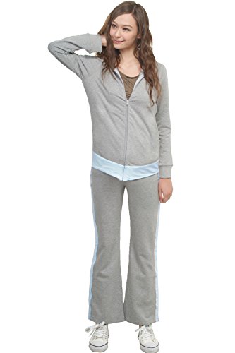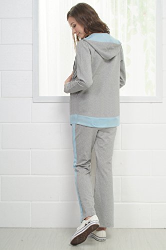 Sweet Mommy 上質コットンスウェットスーツ 上下2点セット Wヘッドファスナー マタニティヨガ マタニティビクス パーカー&パンツ スポーツウェア ウエストリブ ジャージ フィットネス ルームウェア マタニティ 産前産後/M/グレー×ブルー