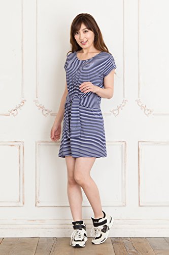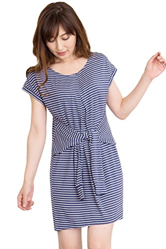 Sweet Mommy 腰巻デザインチュニック さらっとレーヨン ウエストマーク 授乳ワンピ トレーナー ママワンピ 着心地抜群 春夏 カジュアル 産前産後 授乳服 マタニティ/L/ネイビー×ホワイト