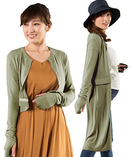 Sweet Mommy 授乳ケープにもなる 裾2WAY カーディガン ベビーカーカバー 指穴そで UV対策 独立クリップ付き ロングカーデ ショートカーデ 春 夏 秋 産前産後 授乳服 マタニティ/M/カーキ