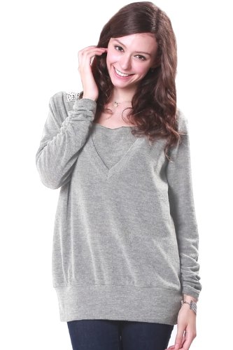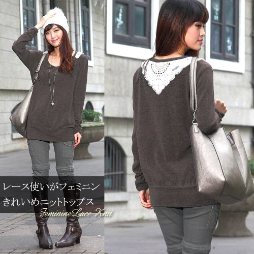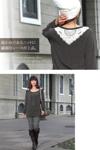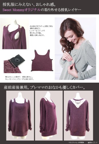 スウィートマミー バックレース付き やわらかニット チュニック 授乳トップス ライトグレー