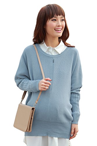 Sweet Mommy オーガニックコットン100% ふっくらニット ざっくり片畦編み リブ袖ドルマン 赤ちゃんの肌にも安心 授乳 セーター トップス 授乳服 / マタニティウェア M ブルー
