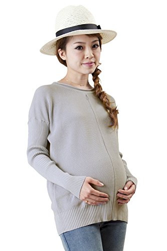 Sweet Mommy 上質オーガニックコットン100% ふっくら 暖か 片畦編み プチドルマン 袖リブ 裾リブ 着痩せ 優しい肌触り ニット セーター 授乳 トップス 授乳服 マタニティ/L グレー