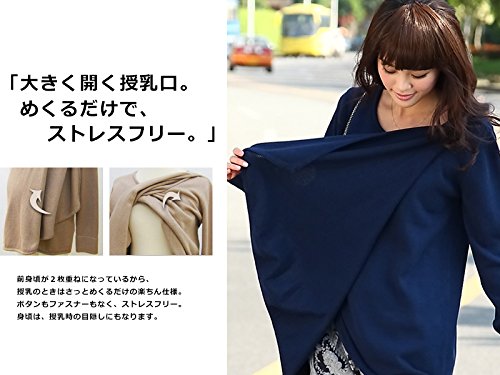 - 前身頃のドレープをめくり、授乳できます。ボタンフリーでワンピースのラインを崩さず、スマートに授乳ができ、肩や脇は縫いつけてあるので安定感も抜群!
