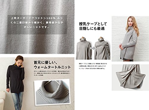 Sweet Mommy オーガニックコットン100% ふっくらニット ざっくり片畦編み オフタートル リブ袖 赤ちゃんの肌にも安心 授乳 セーター トップス マタニティ 授乳服/F/グレー