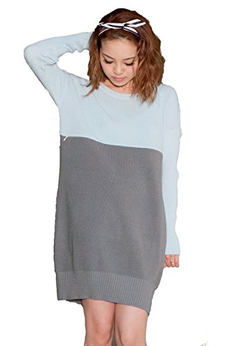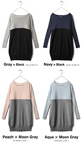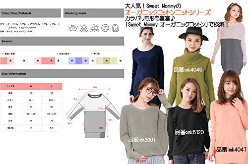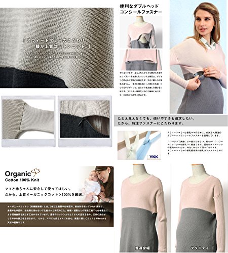 Sweet Mommy オーガニックコットン100% ふっくらニット ざっくり片畦編み バイカラー チュニック リブ袖 赤ちゃんの肌にも安心 授乳 セーター トップス マタニティ 授乳服/ L アクア×ムーングレー
