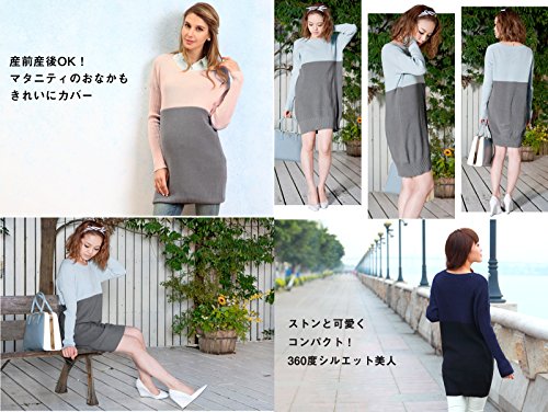 - 【産後も卒乳後もずーっと使える!】シックな配色デザインが目を引くニットチュニック。すっきりとしたラインでプレママのお腹を目立たせず、着痩せ効果◎
